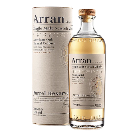 A light and elegant single malt from the Isle of Arran, the Barrel Reserve is matured exclusively in Bourbon barrels, offering bright notes of citrus, vanilla, and sweet orchard fruits. Bottled at 43% ABV.